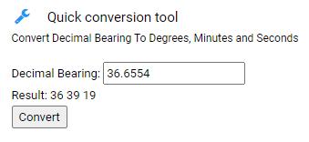 If your survey shows a decimal bearing, such as 36.6554, you may use the Quick conversion tool on the SurveyPlotter page to turn it into degrees, minutes and seconds.